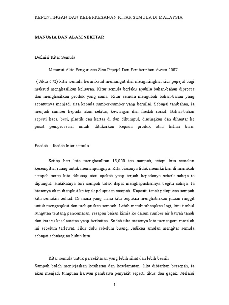 Majlis dirasmikan menteri kesejahteraan bandar, perumahan dan. Pelaksanaan perkara ini berdasarkan peraturan di bawah akta pengurusan sisa pepejal dan pembersihan awam 2007 (akta 672). Mengikut seksyen 74, akta pengurusan sisa pepejal dan pembersihan awam 2007, orang awam harus melakukan pengasingan sisa pepejal dan kegagalan berbuat demikian, jika. Kitar semula, komuniti, pembersihan awam, pengetahuan, pengurusan sisa, sisa pepejal. Dasar pengurusan sisa pepejal negara adalah satu langkah penambahbaikan yang strategic dalam mencapai status negara maju dan pengurusan sisa pepejal yang lebih mapan. Sehubungan dengan itu, pelan perancangan strategik nasional untuk pengurusan sisa pepejal (2005). Peratusan komposisi sisa pepejal ini dapat menggambarkan permasalahan yang ada dalam amalan pengurusan sisa pepejal di sekolah. Jabatan pengurusan sisa pepejal negara adalah merupakan jabatan di bawah kementerian perumahan dan kerajaan tempatan malaysia. Pengurusan sisa pepejal ialah pemungutan atau pengitaran semula bahan buangan yang dihasilkan oleh manusia.dengan adanya sistem pengurusan sisa pepejal dapat mengurangkan kesan terhadap manusia dan alam sekitar.pengurusan sisa melibatkan pepejal,cecair,gas atau bahan radioaktif. Kejayaan pengurusan sisa pepejal sangat bergantung kepada sejauh manakah masyarakat menyedari dan melibatkan diri dengan mengamalkan kaedah pengurusan sisa pepejal yang betul. Pihak sekolah harus memberi pengetahuan dan pendedahan tentang kepentingan dan faedah kitar semula kepada semua pelajar sekolah. Penjagaan alam sekitar adalah sangat penting. Stesen pengurusan sisa pepejal batu maung (31 may 2019).